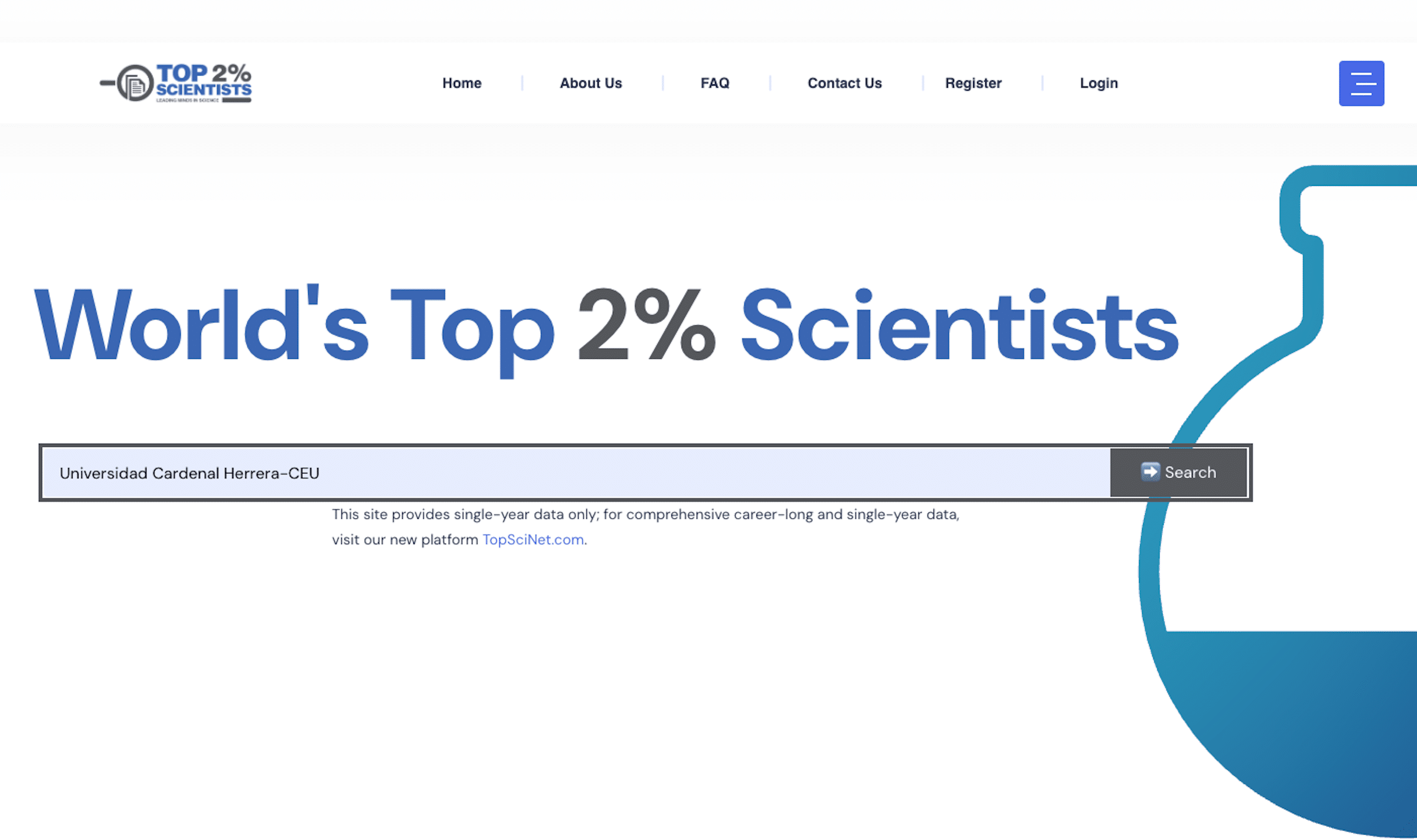 El “Ranking of the World Scientists: World’s Top 2% Scientists”, elaborado por la Universidad de Stanford a partir de la base de datos Scopus, ha incluido, en su nueva edición de 2025, a cinco profesores de la Universidad CEU Cardenal Herrera (CEU UCH). Esta “top researchers list” es uno de los listados de referencia mundial sobre producción científica. Para la selección del 2% de los investigadores más influyentes y con mayor impacto mundial en cada área, entre los casi 7 millones de científicos en activo de todo el mundo, la Universidad de Standford emplea indicadores estandarizados, como el número de publicaciones indexadas en la base de datos Scopus, las citas recibidas o el índice h de cada investigador.