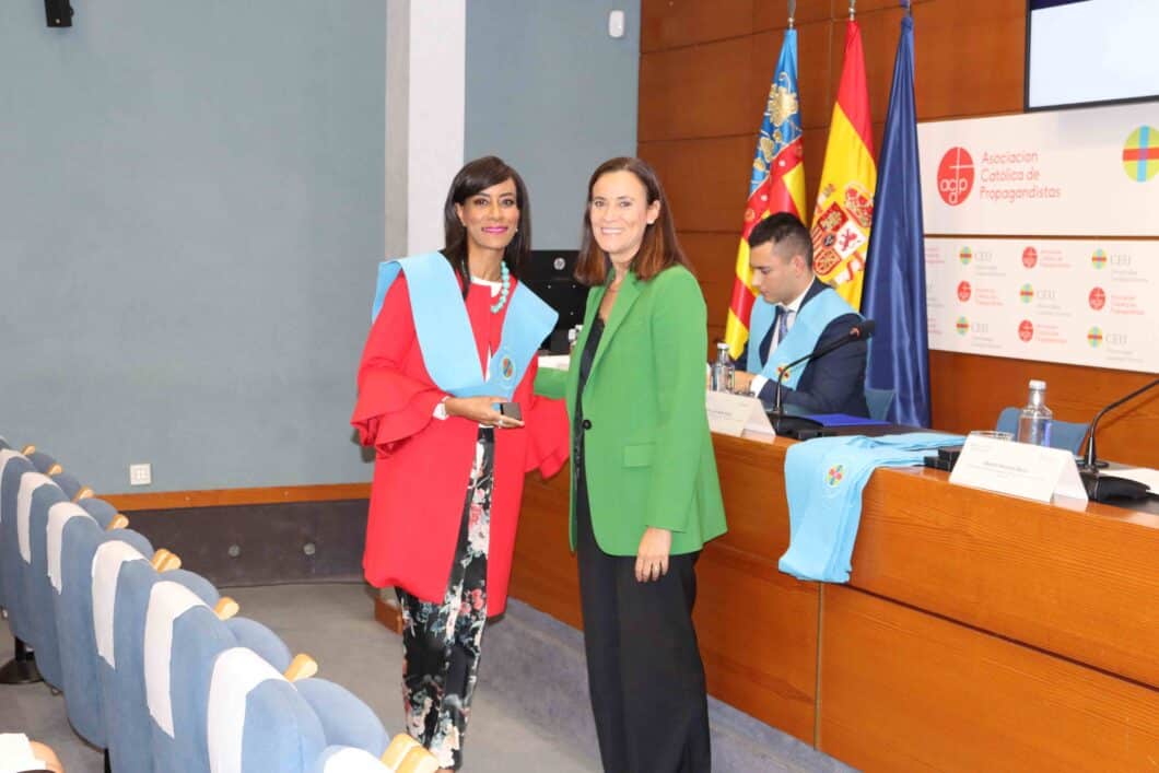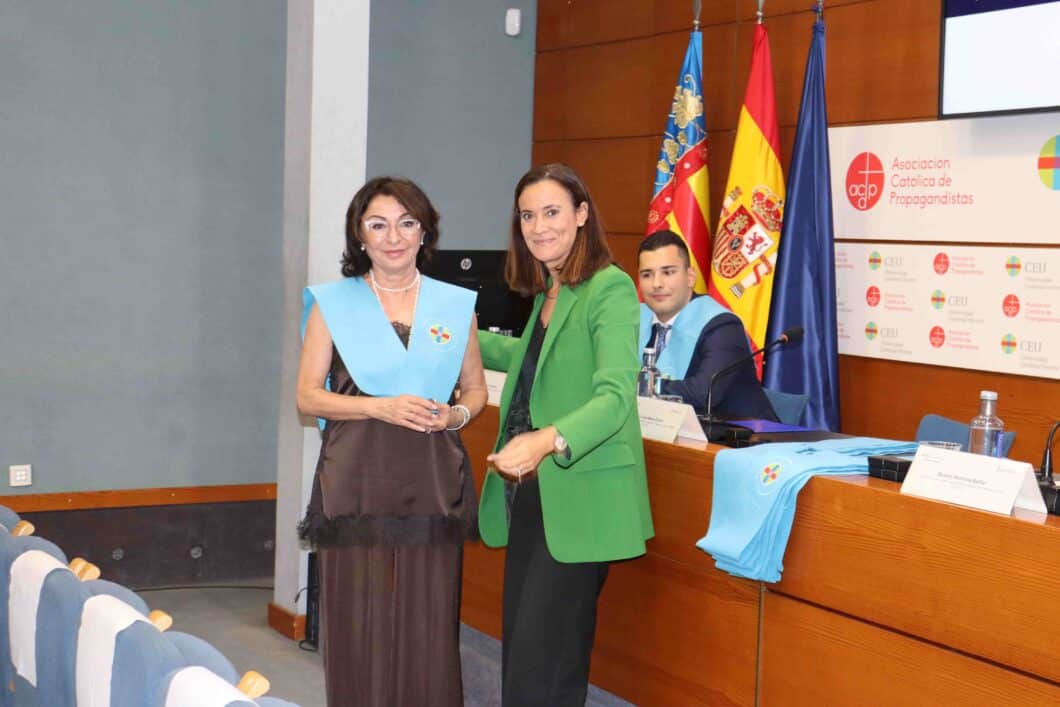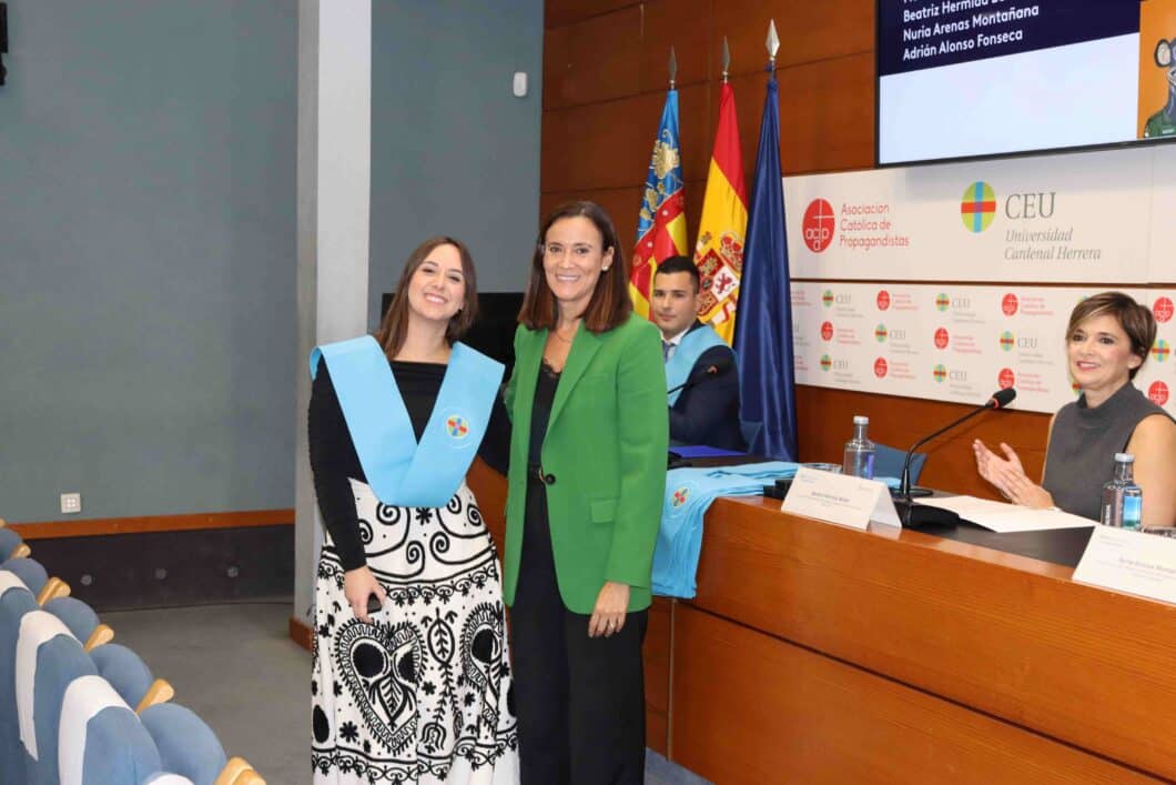 Presidían la mesa Beatriz Hermida como coordinadora interna del título; Nuria Arenas, abogada de Broseta Abogados, que es la impulsora del proyecto y coordinadora externa del título; María Luisa Mena, Vicedecana de grado en Derecho, que ha impuesto las becas a los recién titulados; y Adrián Alonso, que habló en representación de sus compañeros. Adrián es también alumni del grado en Derecho de la CEU UCH y actualmente se encuentra cursando además el Master de Abogacía y Procura.