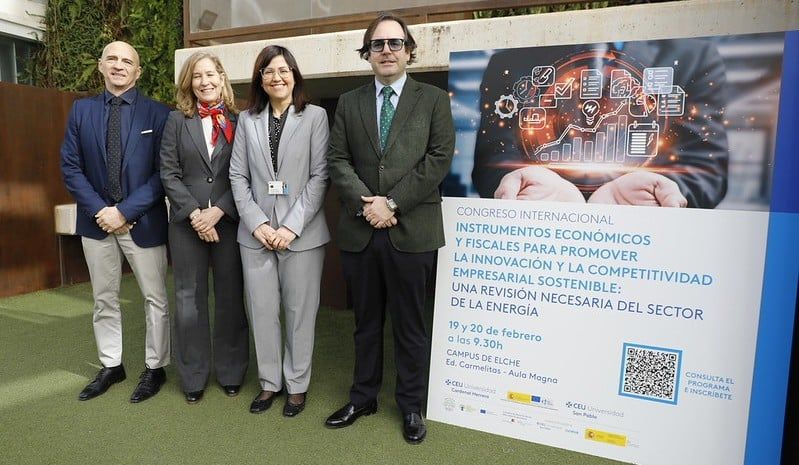 La Universidad CEU Cardenal Herrera celebró los días 19 y 20 de febrero en su campus de Elche un congreso internacional centrado en el análisis jurídico, económico y fiscal de los instrumentos que están configurando la transición energética, la descarbonización y la competitividad empresarial sostenible en el ámbito europeo. El encuentro, organizado conjuntamente con la Universidad CEU San Pablo, reunió a especialistas procedentes de universidades e instituciones académicas nacionales e internacionales con el objetivo de examinar el papel de la fiscalidad ambiental, la regulación económica y los mecanismos normativos vinculados al cambio climático, así como su proyección en los distintos ordenamientos jurídicos.