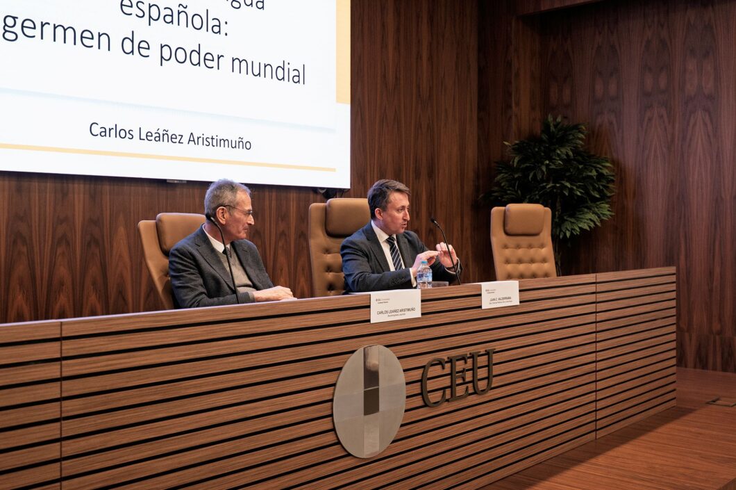 Con el título La cultura y lengua española, germen de poder mundial, Leáñez invitó en su conferencia a reflexionar sobre la relación entre lengua, pensamiento y realidad: “No hablamos de lo que vemos, sino que vemos aquello de lo que podemos hablar”, afirmó, subrayando que el lenguaje no solo describe el mundo, sino que lo estructura, pues sin los conceptos que aporta la lengua, la experiencia humana sería un conjunto de estímulos indiferenciados.