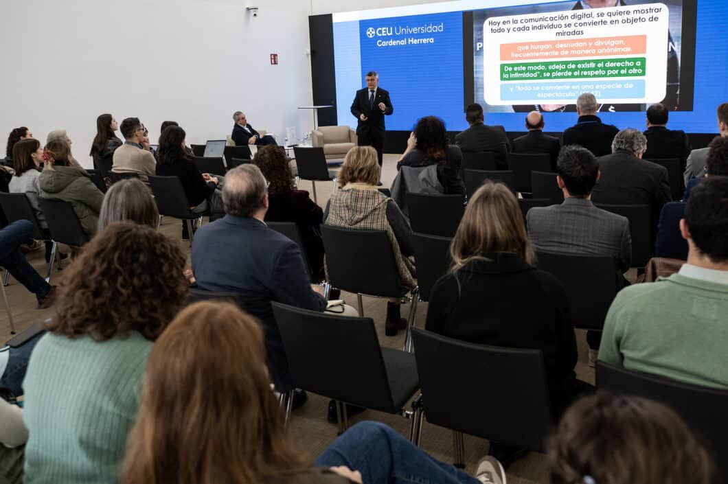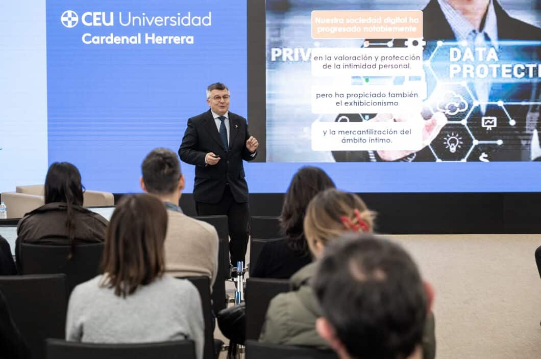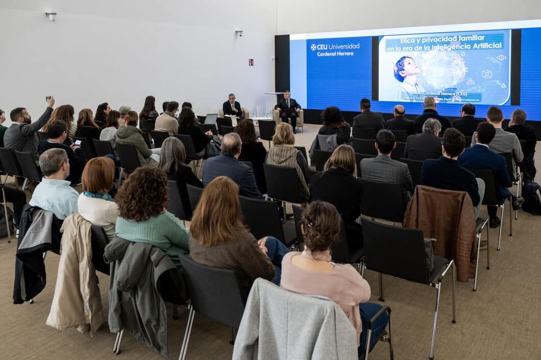 - Estudiantes y profesores de la Universidad CEU Cardenal Herrera han asistido a esta conferencia, en torno a los retos que la IA plantea para la privacidad de las personas y, especialmente, de las familias.