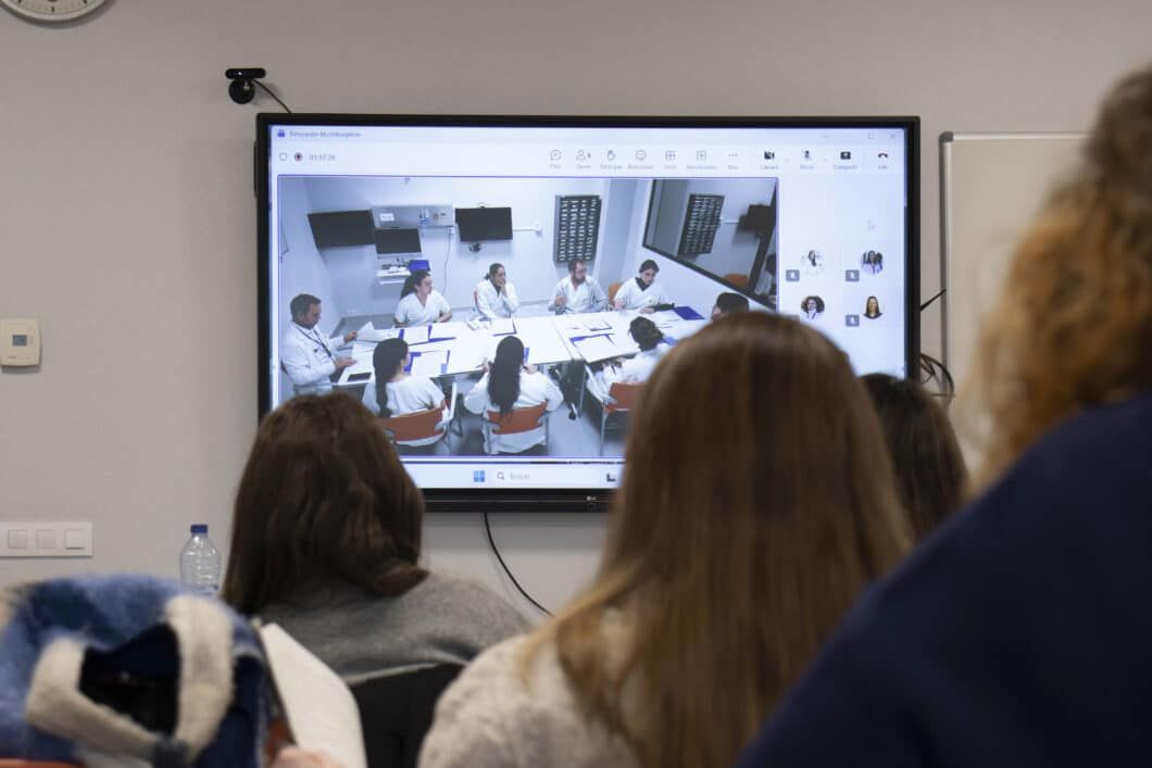 La segunda fase ha consistido en la simulación conjunta: una representación de una sesión clínica multidisciplinar real en la que los estudiantes han tenido que consensuar decisiones clínicas sobre el paciente previamente estudiado. Alumnos de las cuatro titulaciones han intervenido en la atención al paciente, debatiendo y estableciendo un plan de cuidados integrado a corto, medio y largo plazo.