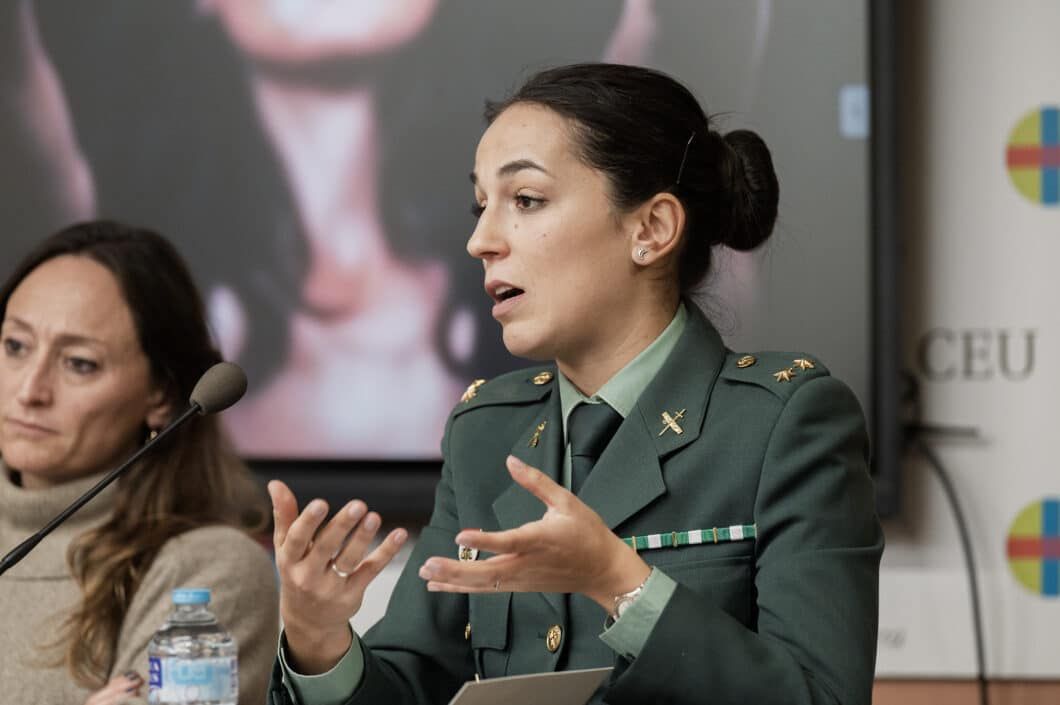 La teniente Estefanía García, Jefa del Área de Delitos contra las Personas de la UOPJ de la Guardia Civil, destacó la importancia de la denuncia en casos de violencia de género, que puede ser presentada tanto por la víctima como por terceros. Y subrayó que la toma de una denuncia completa y detallada es esencial para el proceso judicial y para evaluar el riesgo de la víctima mediante el sistema VioGén, que determina el nivel de protección necesario.