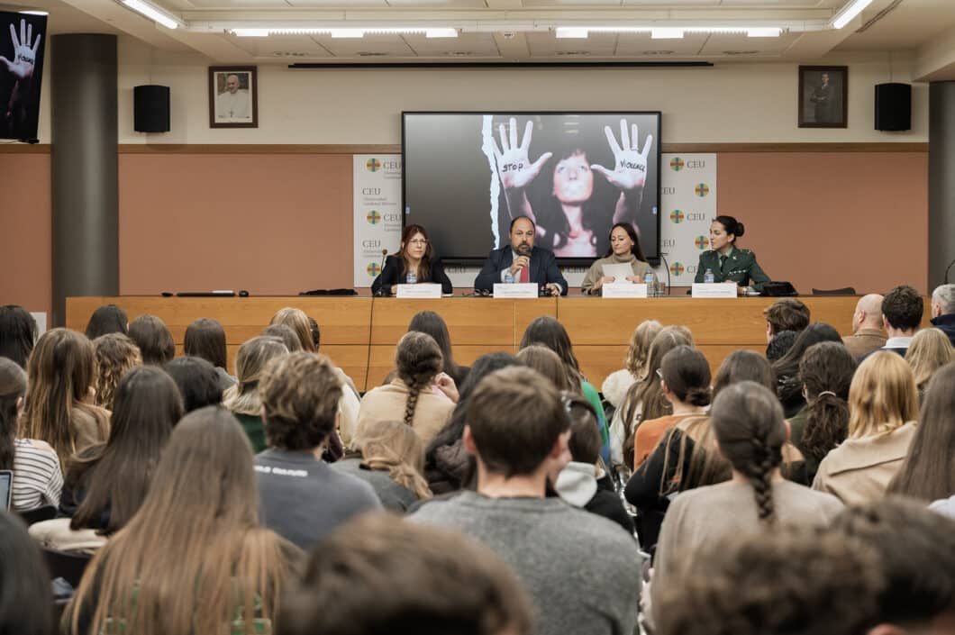 Moderada por el profesor Elías Durán, director de Comunicación Corporativa de la CEU UCH, la mesa redonda permitió analizar la prevención y detección precoz de la violencia contra la mujer, además de conocer las medidas de seguridad que se pueden llevar a cabo en casos de violencia, junto con la defensa personal y jurídica de la víctima y, sobre todo, el apoyo, ayuda y orientación a la mujer en estos casos.