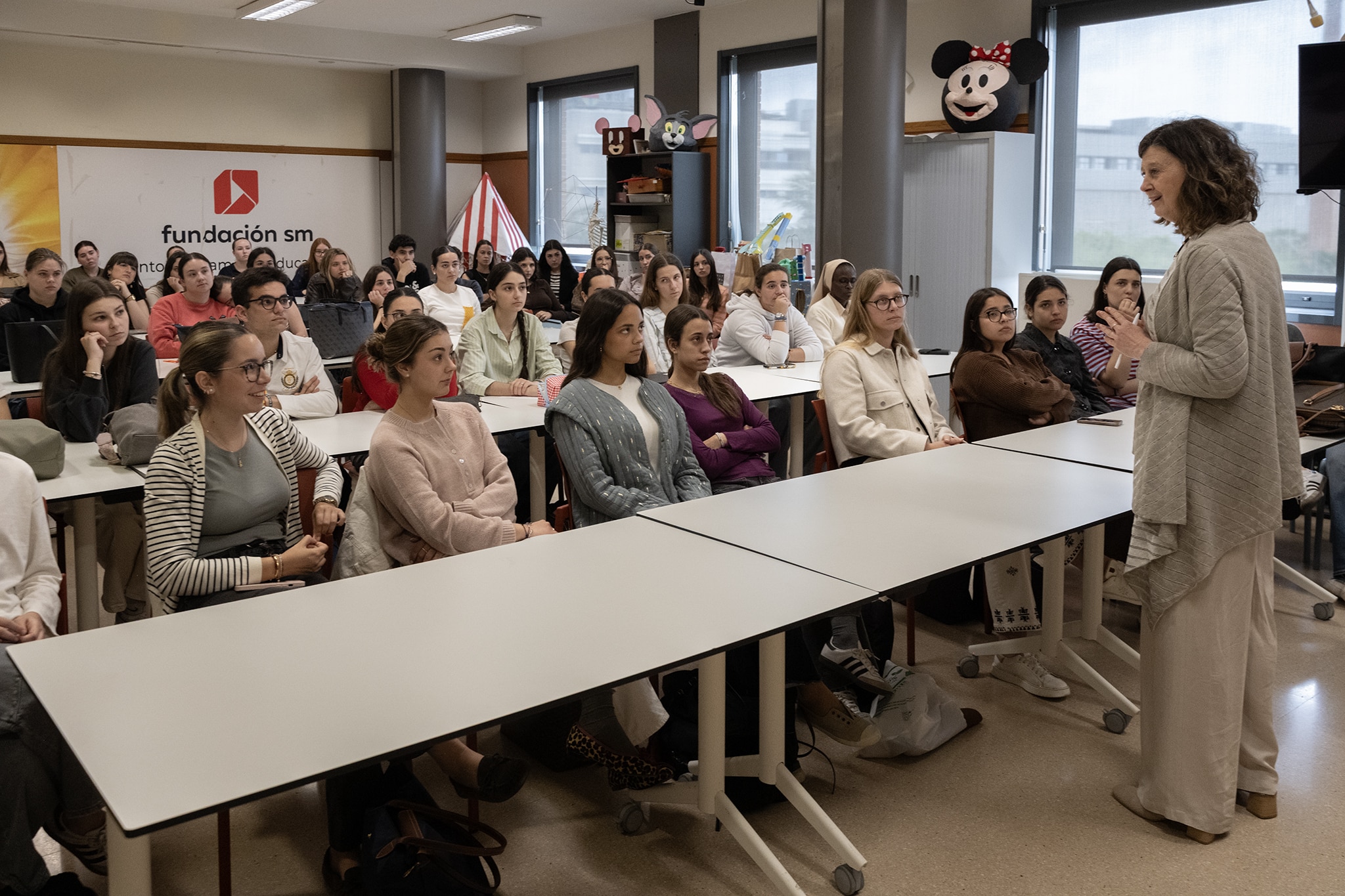 Los estudiantes de primer curso del grado en Educación Infantil y Primaria de la Universidad CEU Cardenal Hererra (CEU UCH) recibieron el pasado jueves 23 de abril la visita de Maite Ortíz, directora de la Fundación SM.
