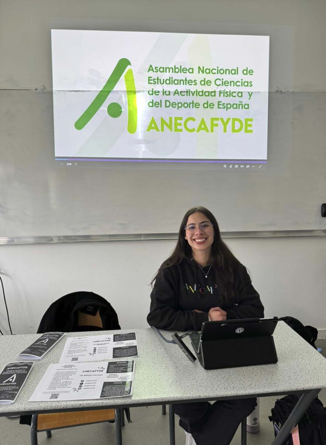 Adriana Paola ha participado en el 54º Congreso de la Association Nationale des Étudiants en Sciences et Techniques des Activités Physiques et Sportives (ANESTAPS) en nombre de la Asamblea Nacional de Estudiantes de Ciencias de la Actividad Física y del Deporte de España (ANECAFYDE)