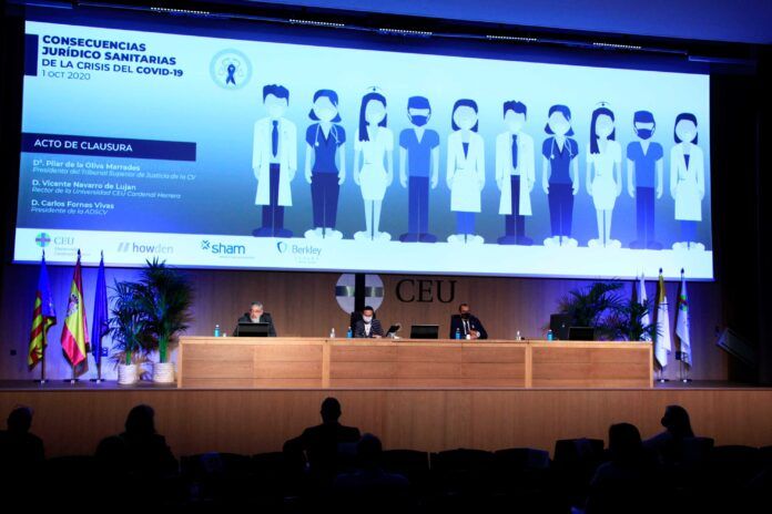 En su discurso, la directora general de Universidades de la Generalitat Valenciana ha agradecido a la CEU UCH su papel durante la pandemia. «En estos meses, desde la Conselleria os hemos sentido próximos, con toda la disponibilidad para la colaboración, la cooperación y la comprensión. Quiero felicitaros por la adaptabilidad de vuestros sucesivos planes de contingencia durante el confinamiento y por cómo afrontáis la docencia en este nuevo curso, con vuestro modelo de doble presencialidad, las aulas con tecnología Hyflex, los programas COIL, de aprendizaje colaborativo internacional, y la certificación como espacio Covid protegido. Permiten la flexibilidad, la calidad docente y aportan la certidumbre y seguridad sanitaria que estos tiempos requieren», ha afirmado Pilar Ezpeleta.