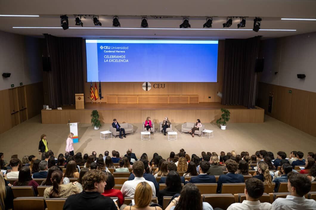 La Vicedecana del grado en Periodismo, Anunciación Ramírez, fue la encargada de moderar la mesa redonda en torno a la excelencia, en la que participaron los alumni: Ignacio Risueño, magistrado del Tribunal Superior de Justicia y Alumni CEU de Derecho, la arquitecta Inma Soler y la investigadora y profesora de Veterinaria en la CEU UCH Maria Palomar. Los participantes definieron la excelencia como “una forma de ser, la actitud que uno pone en el día a día para dar la mejor versión de sí mismo sin conformarse, algo que inspira y se contagia”.