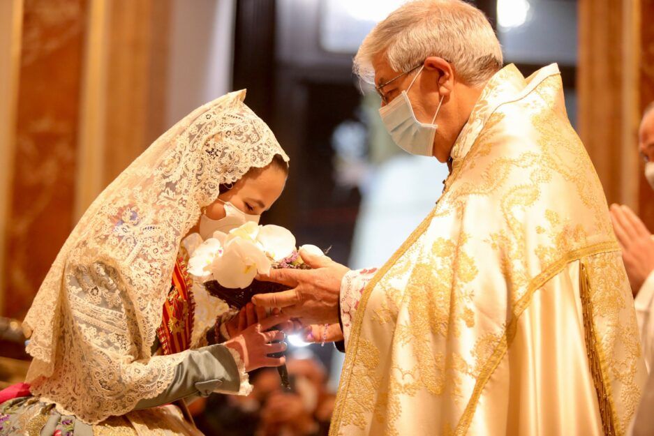 Más de 100.000 falleros han procesionado por las calles de valencia durante el jueves y el viernes para ir al encuentro de la Virgen de los Desamparados. Desde el año 2019 los valencianos no han podido realizar la ofrenda floral a su patrona en condiciones normales, debido a la pandemia, si bien en septiembre sí hubo ofrenda bajo estrictas medidas sanitarias. Estos dos días el esplendor de este emotivo acto se ha convertido en toda una muestra de fervor por la Geperudeta, sobreponiéndose a las inclemencias meteorológicas.
