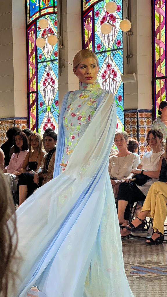 Tras Ramelle fue el momento de admirar uno de los desfiles más esperados del día: Maison Mesa. La firma, que ya había impactado en ediciones anteriores, volvió a demostrar que su nivel de confección está a la altura de la alta costura. Cada prenda mostraba un acabado impecable, con costuras cuidadas hasta el último detalle.