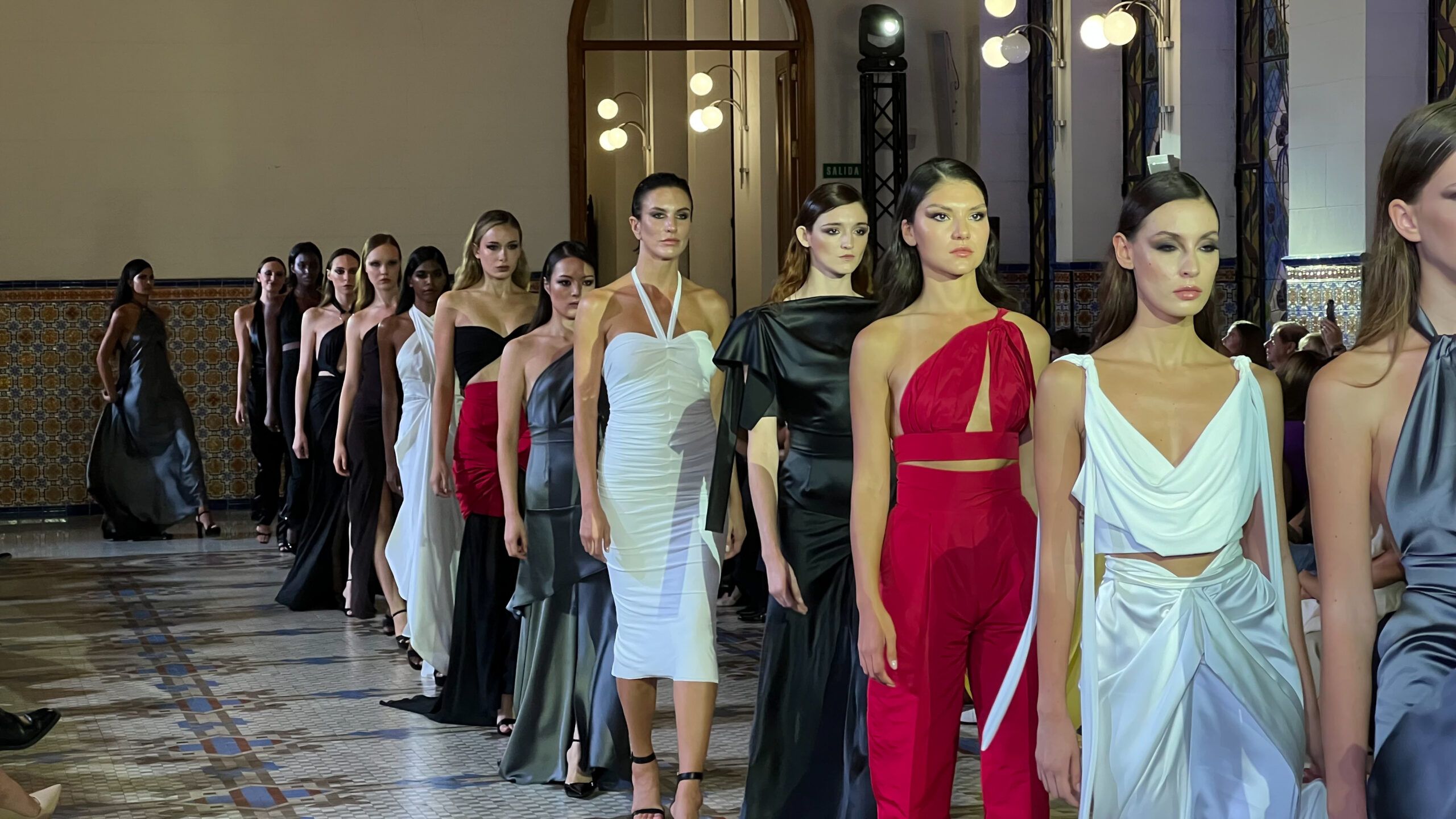 El desfile fue pura elegancia. Piezas atemporales, femeninas y llenas de piedras preciosas que brillaban a cada paso. Los diseños, en negro, blanco y rojo, transmitían fuerza y empoderamiento y cada look parecía pensado para que la mujer se sintiera protagonista. El cierre fue impactante: un vestido negro de gran volumen que recordaba a un cisne, potente y delicado a la vez. En una palabra, un desfile pleno de autenticidad.