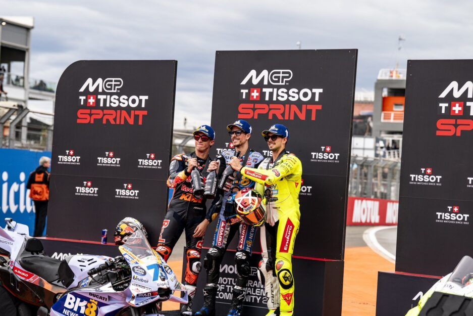 El piloto del BK8 Gresini Racing MotoGP se ha mostrado muy consistente desde los primeros compases de la carrera y se ha mantenido hasta la bandera a cuadros en la primera plaza, aunque seguido muy de cerca por Pedro Acosta (KTM) y Fabio Di Giannantonio (Ducati), que han cruzado la línea de meta a 1.1 y 2.6 segundos respectivamente.